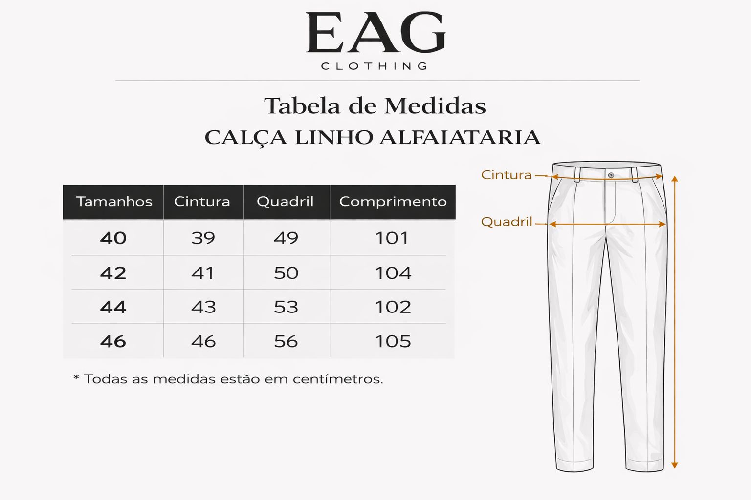 Descubra a elegância atemporal da Calça Alfaiataria Linho, confeccionada com o mesmo linho utilizado pelas maiores marcas do Brasil. Uma peça que une qualidade premium, leveza e acabamento impecável.