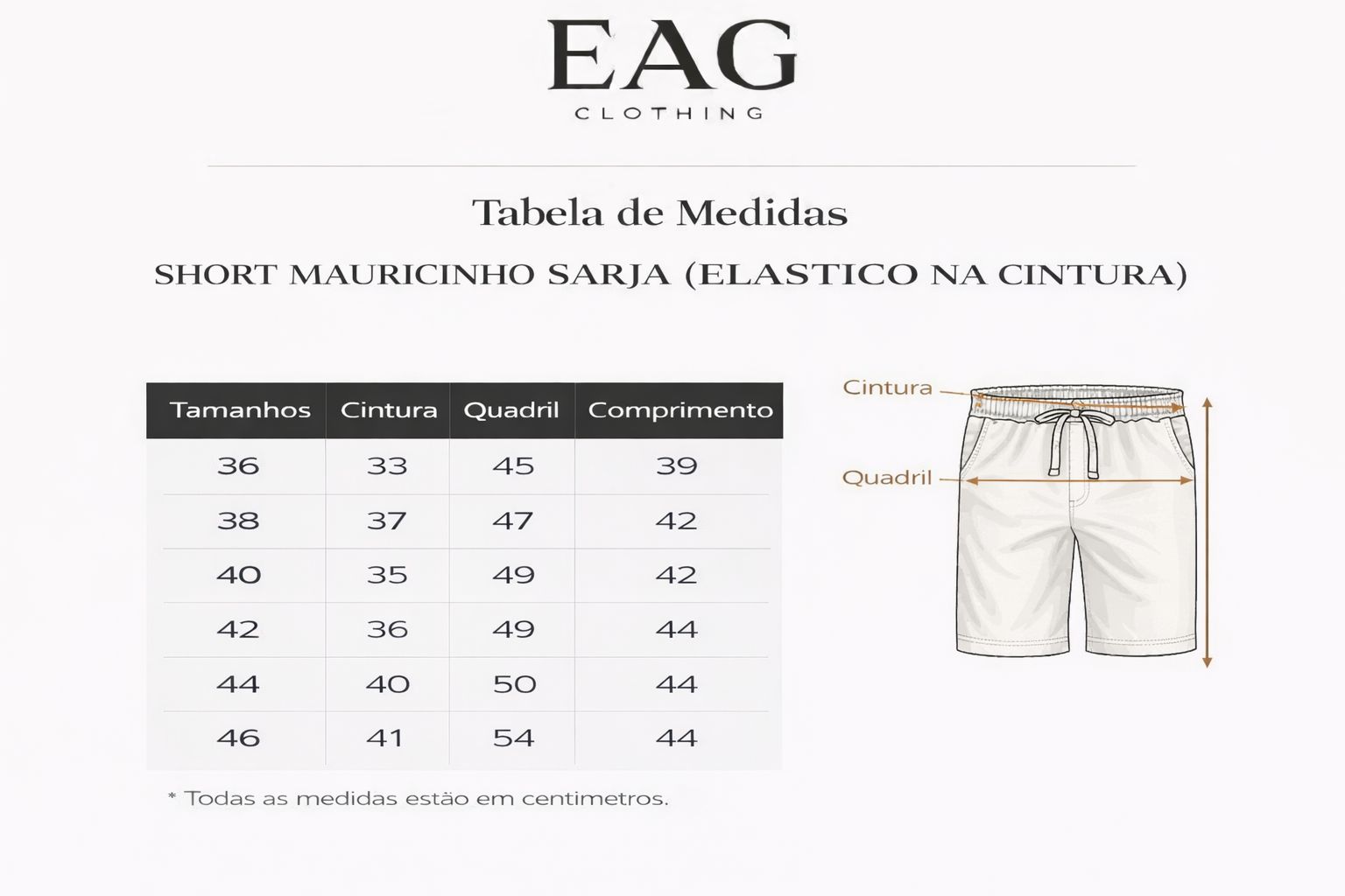 O Short Mauricinho Sarja é perfeito para quem busca um visual moderno, leve e confortável. Confeccionado em sarja de alta qualidade, oferece resistência, toque macio e excelente caimento.