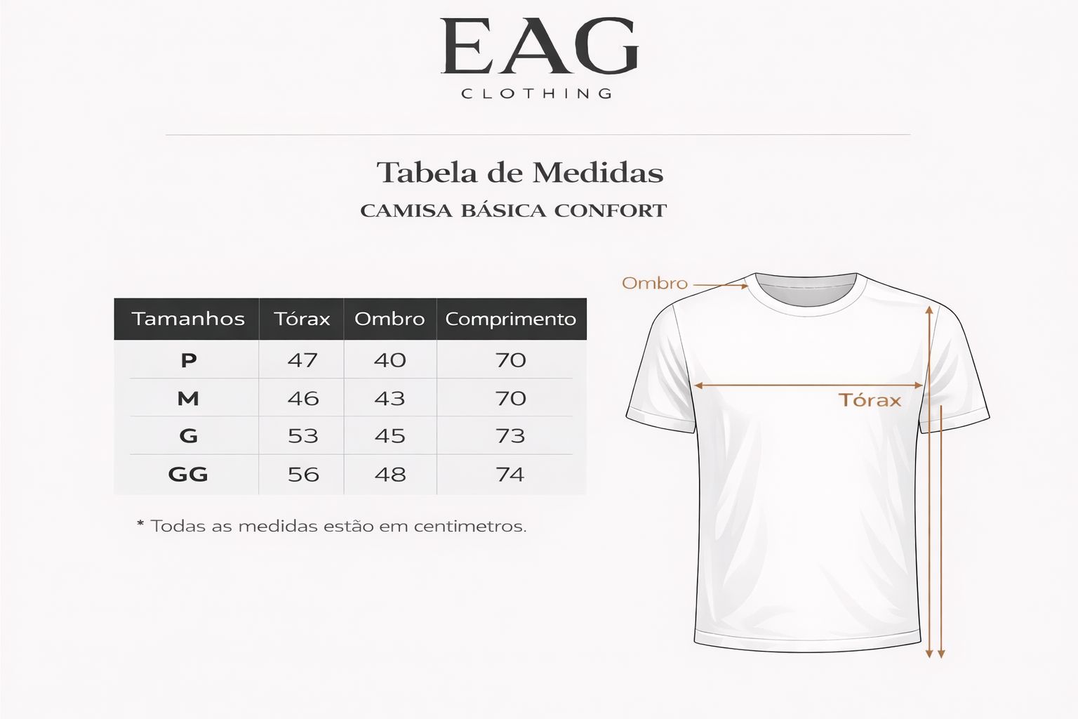 A CAMISETA BÁSICA CONFORT é aquela peça essencial que une conforto, durabilidade e estilo atemporal. Confeccionada em malha 175g, mais encorpada e macia que as convencionais, proporciona um caimento impecável e toque extremamente confortável.